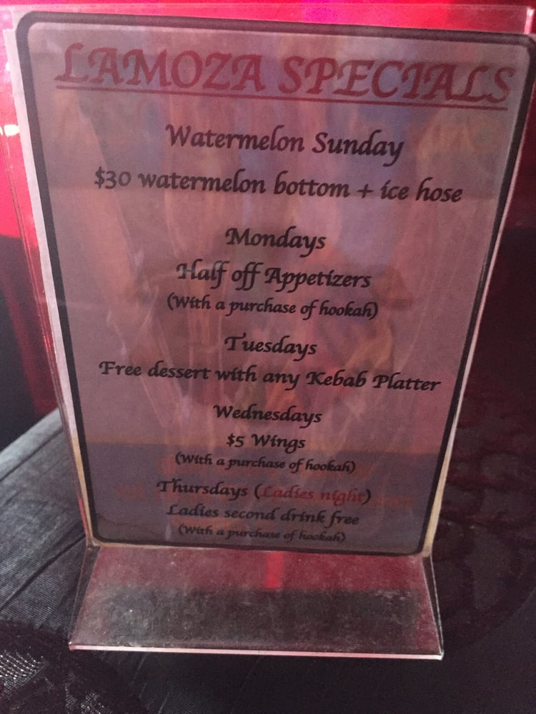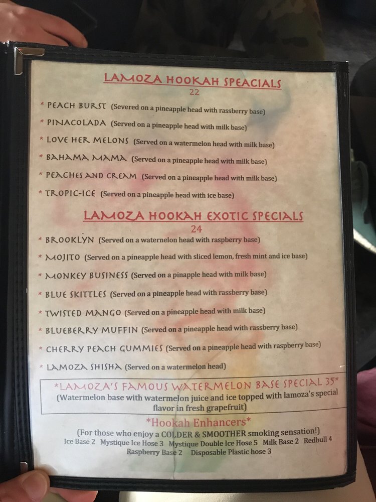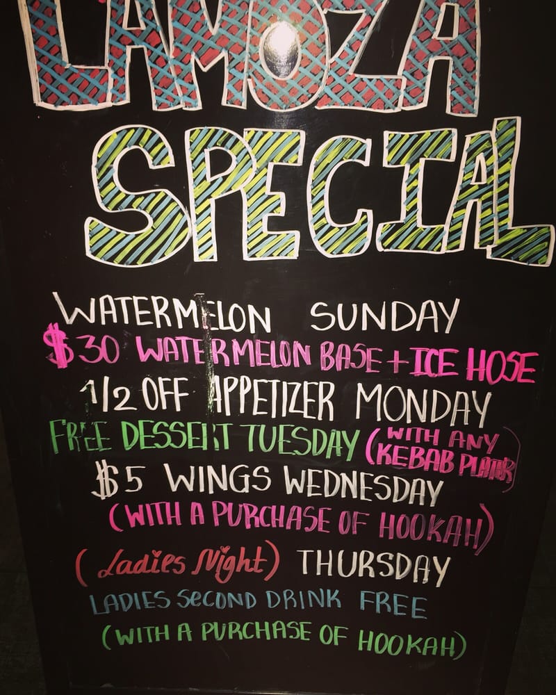 Tucked away in Brooklyn, Lamoza is a Middle Eastern lounge offering a variety of dishes and a laid-back atmosphere. With options for delivery, takeout, and reservations, this venue caters to a wide range of patrons. The menu boasts many vegetarian options, making it a great choice for all dietary preferences. From buffalo chicken salad to hummus and chicken tenders, the quick bites showcase a delicious mix of flavors. Large combo platters provide ample choices for sharing with friends or family. Reviewers rave about the friendly staff, extensive hookah flavors, and casual ambiance. With board games available, Lamoza offers a unique dining experience perfect for late-night outings or weekend get-togethers. Whether enjoying a milkshake or a fruity hookah flavor, Lamoza has something special for everyone.